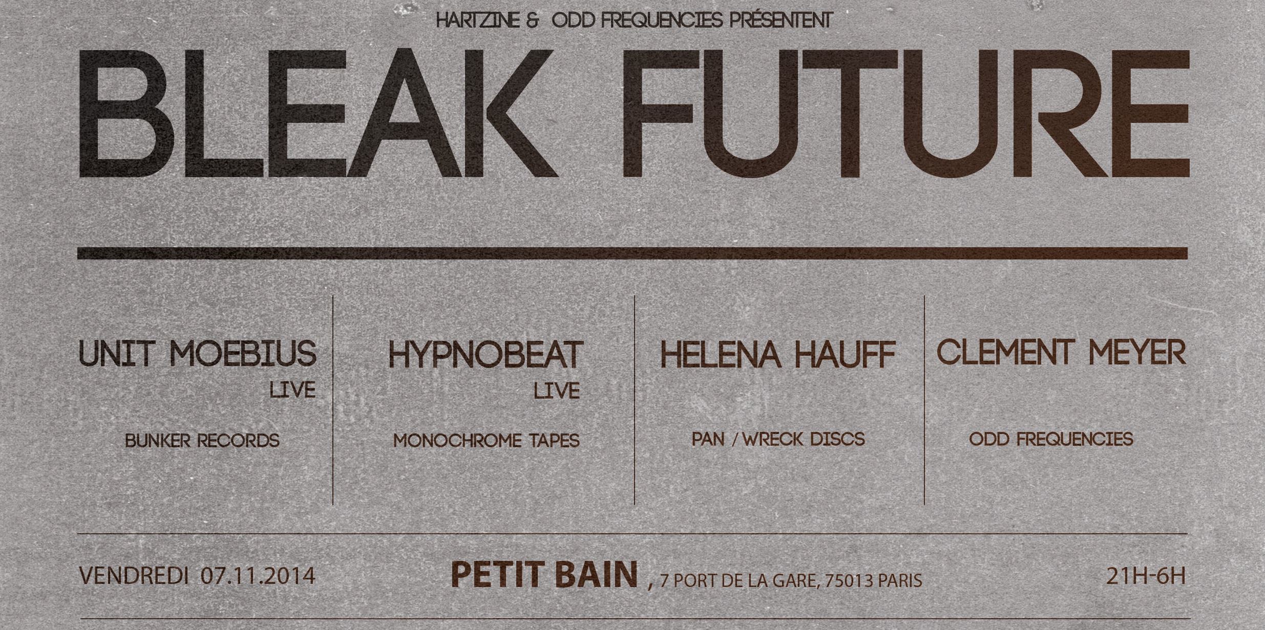 07.11.14 Hartzine présente Bleak Future 001, Petit Bain, Paris | flyer | flyer | RA | FB
