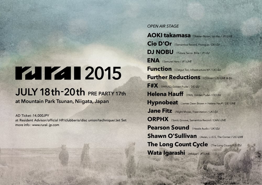 18.07.15 Rural Festival, Mountain Park Tsunan, Niigata, Japan | flyer | RA | FB
